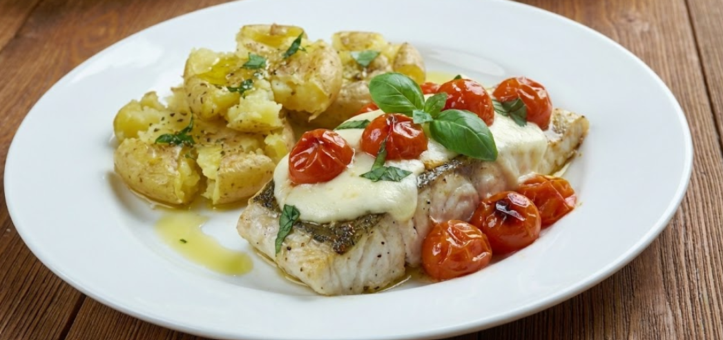 ·       Main: Succulent Roasted Barramundi Caprese served over rustic crushed potatoes.
